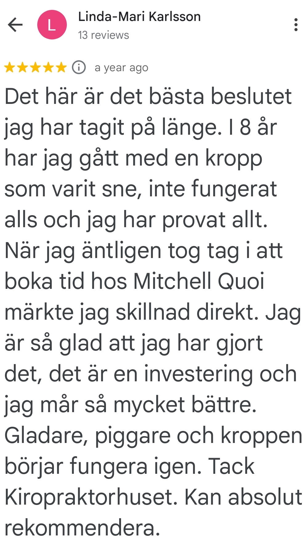 Kiropraktorhuset finns i Norrköping, Linköping och Mjölby.